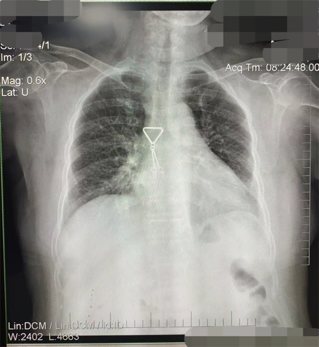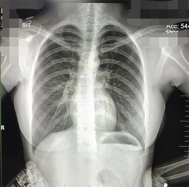 解決:去除手機(jī)后,使患者左側(cè)緊貼成像件曝光。