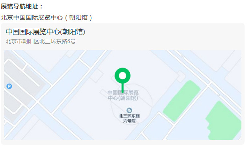 展館導(dǎo)航地址:北京中國(guó)國(guó)際展覽中心(朝陽(yáng)館)