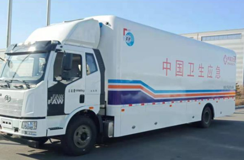 顯浩核化污染洗消車應運而生,該款車具有多系統(tǒng)高度集成、全天候機動響應、水電自我保障等突出優(yōu)點。該車輛滿載87噸,擴展后的工作空間長達15米,寬7米,高5米,能有效防止交叉污染,最大程度地保障傷病員和救援人員的生命健康安全。傳統(tǒng)國內(nèi)外洗消作業(yè)以公眾洗消帳篷為主,存在自身防污去污難、功能單一、智能化水平不高等問題。顯浩研制的多功能核化污染洗消車,提供了突擊處置、智能洗消等功能為一體的化學事故洗消處置技術(shù)裝備保障,可第一時間快速進入污染區(qū),完成應急處置和人員救助。