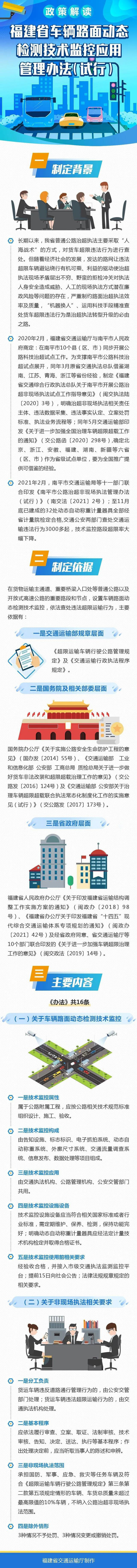 為加強道路貨物運輸車輛超限超載治理,規(guī)范道路運輸非現(xiàn)場執(zhí)法工作監(jiān)測車動態(tài)檢測,車輛路面動態(tài)檢測技術(shù)監(jiān)控由告知設(shè)施、標志標識、電子抓拍系統(tǒng)、動態(tài)自動稱重系統(tǒng)、外廓尺寸系統(tǒng)、交通流量調(diào)查系統(tǒng)、信息發(fā)布、數(shù)據(jù)處理等項目組成。車輛路面動態(tài)檢測技術(shù)監(jiān)控的電子抓拍系統(tǒng)由公安交管部門接入應(yīng)用,用于查處貨運車輛通過檢測區(qū)域不按規(guī)定車道行駛等涉嫌違反道路交通安全規(guī)定的行為;動態(tài)自動稱重及外廓尺寸系統(tǒng)由交通執(zhí)法機構(gòu)接入應(yīng)用,用于非現(xiàn)場查處貨運車輛通過檢測區(qū)域違反超限運輸管理等違法行為;交通流量調(diào)查系統(tǒng)由公路管理機構(gòu)接入應(yīng)用。如何查處《辦法》要求,車輛路面動態(tài)檢測技術(shù)監(jiān)控使用前應(yīng)提前15日向社會公告,運用車輛路面動態(tài)檢測技術(shù)監(jiān)控非現(xiàn)場查處貨運車輛超限運輸違法行為應(yīng)依法履行審查、立案、取證、法制審核、技術(shù)審核、告知、決定、送達、執(zhí)行等基本程序。