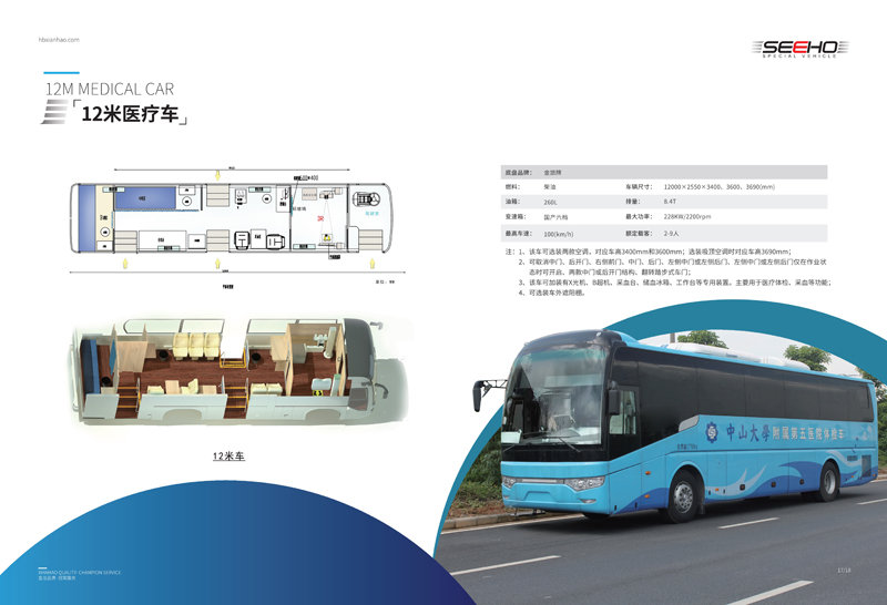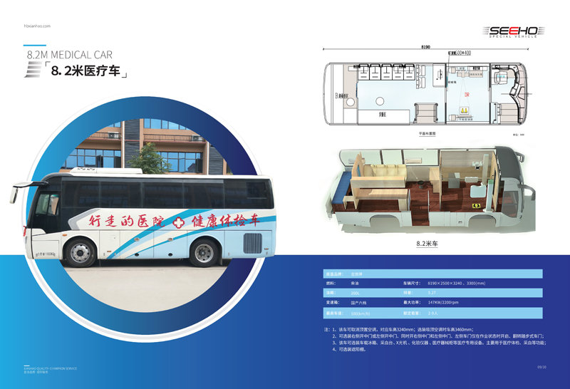 顯浩專用車生產(chǎn)的體檢車均選用一線品牌車(宇通、金龍、金旅)實(shí)用、先進(jìn)、布局合理、操作方便、駕乘舒適。 體檢車長(zhǎng)有6米、7米、8.2米、9米、10.5米、11米、12米可選。