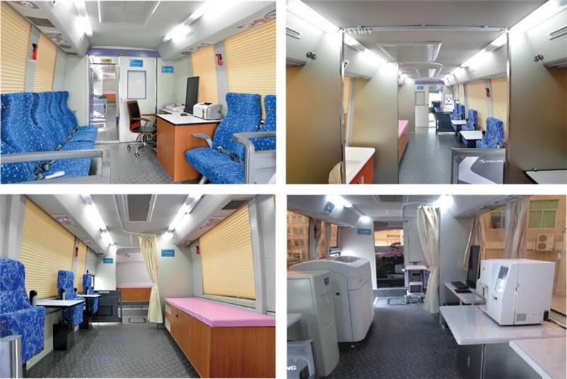 專(zhuān)業(yè)的流動(dòng)獻(xiàn)血車(chē)征詢(xún)區(qū)、體檢區(qū)、采血區(qū)、休息區(qū)布置合理,綠色、環(huán)保的特點(diǎn),實(shí)現(xiàn)廢氣零排放。車(chē)內(nèi)配置了頭等艙式獻(xiàn)血椅,獻(xiàn)血車(chē)實(shí)際所用到醫(yī)療設(shè)備一應(yīng)俱全,總體空間十分寬闊。大部分流動(dòng)的獻(xiàn)血車(chē)都有冷暖空調(diào)系統(tǒng)、熱合機(jī)臺(tái)、醫(yī)用血液冷藏箱、工作臺(tái)椅、飲水機(jī)、烘手機(jī)、配電柜、采血椅、采血臺(tái)、紫外線(xiàn)消毒燈、 污物桶、滅火器、排風(fēng)系統(tǒng)等。全車(chē)配備先進(jìn)的平穩(wěn)支撐系統(tǒng),配置了網(wǎng)絡(luò)WIFI,空氣凈化消毒系統(tǒng),確保獻(xiàn)血活動(dòng)開(kāi)展時(shí)車(chē)內(nèi)空氣的潔凈衛(wèi)生,是一個(gè)移動(dòng)體檢中心可用于現(xiàn)場(chǎng)體檢和采血。